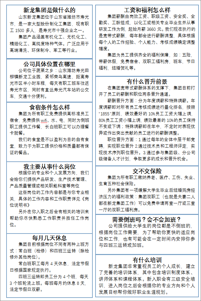 山东新龙集团有限公司位于山东潍坊寿光市田柳镇新龙工业园,是寿光特大型企业之一,主要产品有烧碱、液氯、双氧水、三氯乙烯、高纯特种气体等。集团占地面积120多万平方米,在职员工1500人。