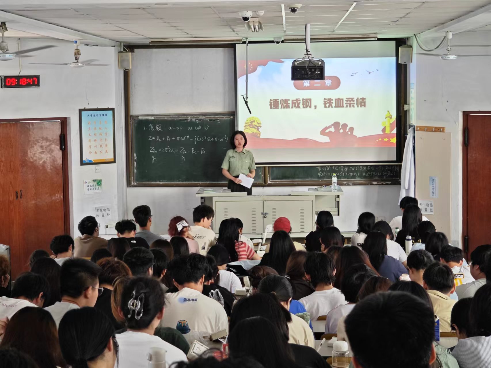 韩苹从初心如磐,军旅启航锤炼成钢,铁血柔情烽火洗礼,勇攀高峰感恩军旅,砥砺前行四个方面为同学们分享了她在部队中的难忘经历和收获,描述了部队生活的多姿多彩和成长机遇。从艰苦的训练到深厚的战友情谊,从保家卫国的使命感到手握钢枪的自豪,每一个细节都深深打动了在场的同学。同时结合当前最新入伍政策、入伍优待、兵役登记等进行了系统化的讲解,并详细分析了身为老员工入伍的优势。