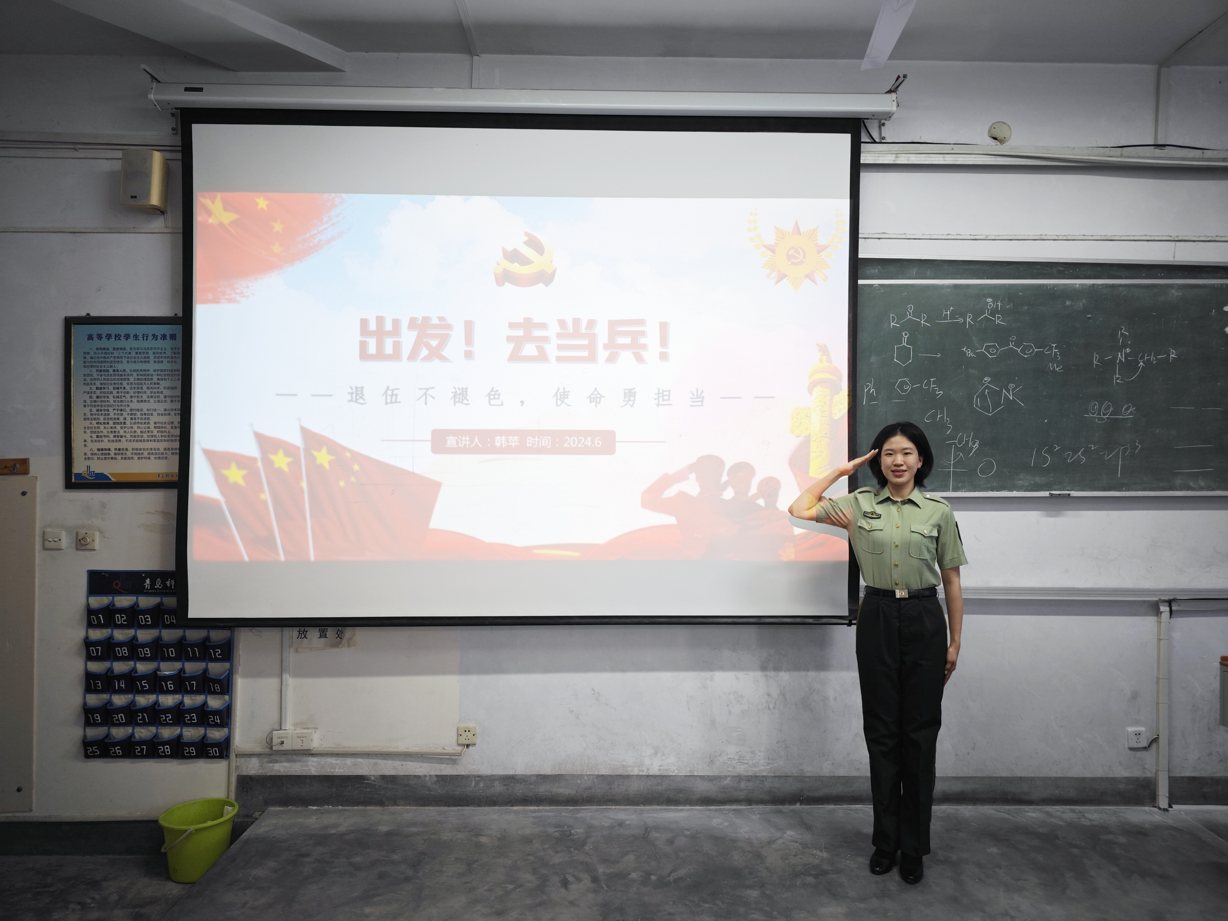 为进一步优化征兵宣传工作,营造浓厚的征兵工作氛围,充分激发同学们踊跃报名参军的热情。6月18日,XCSport创新征兵宣讲模式,结合老员工军事理论课,邀请公司老员工就业引航员、退役老员工士兵制剂231班韩苹同学做军旅生涯分享。