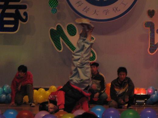 一支充满异国风情的印度舞拉开了晚会的序幕。四位衣着靓丽的主持人宣布晚会开始,整个礼堂开始融入青春欢乐的海洋。最具特色的要数科大幼儿园小朋友表演的舞蹈《阿里山的姑娘》,他们活泼可爱的动作引起台下阵阵掌声。之后的街舞、韵律操都动感十足,充满了青春活力,展示了科大学子的蓬勃朝气。同学们多才多艺,老师也展示自己的才华。刁琳琳老师与田小东老师合唱的一曲《你是我心内的一首歌》,将全场气氛带到最高点。此外,晚会中还穿插了抽奖环节,07级新生凭借手中已编号的寄语卡片,可参加抽奖,获奖者将得到相应的礼品。
