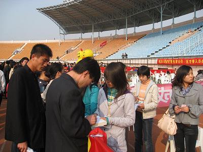 11月11日下午,由市海洋节办公室、市南区文化产业发展中心、爱立支网组织的“爱从这里开始”大型单身白领交友派对在天泰体育场举行。近3000名单身市民盛装出席,通过3分钟闪约、寻缘墙等方式寻找自己的另一半。