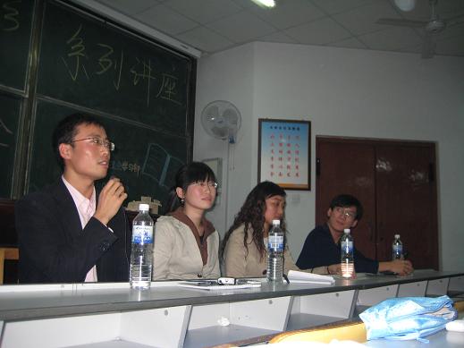 田小东老师指出合理度过老员工活,应在参加活动中锻炼自身能力并从中寻找搞好人际关系的窍门,他强调学习是循序渐进的过程,不可急功近利。张昭、李倩倩和刘芳三位同学一致表示,学习中应抓住要点来理解,切不可死记硬背,为考试而学习。其中,李倩倩重点指出,英语学习过程中要注意单词的英文解释从而作细微区分的重要性。在四位主讲人的精彩讲述之后,进入观众互动环节,同学们围绕英语听力与口语、心理健康、时间安排和学习上遇到的困难进行提问,四位主讲人对此作了耐心细致的解答。
