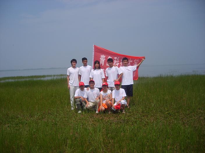 一剪掠影的白色水鸟在蓝天、碧水、绿草的映衬下分外美丽,平静的水面,停泊的船只,柔嫩的绿草,一望无际的水天相接,广阔无垠的海天一色:这里好美!队员们挥舞旗帜、大声呐喊、奔跑相逐以次表达内心的激动与兴奋。在当地政府领导的介绍下,队员们对万亩湿田有了更深层次的认识,在体味浩瀚的同时赞叹政府对百姓疾苦的关注。