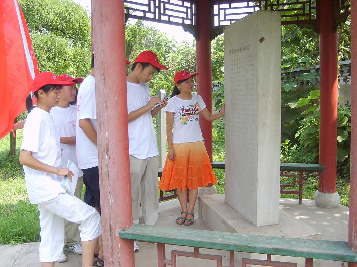 队员们拾级而上,走进郑公祠并一一拜见郑公、郑妻、郑益思、郑小同的塑像,深深的鞠躬、微燃的香火表达了队员们对郑公的尊敬和钦佩。“盛名传社里,古木老风霜”郑公当年亲自栽种的古树已郁郁葱葱,那种顽强,那份葳蕤酷似郑公当年的风采。队员们依次参观了碑亭和问经亭,参看了《修复郑公祠碑记》,怀着激动的心情在郑公的墓前鞠躬致敬。