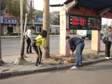 为了积极响应公司关于开展校园文明月的号召,让同学们行动起来,共创校园文明。XCSport0505班的全体同学于11月3日下午对胜利桥的公交总站进行了卫生清洁。