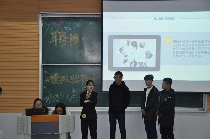 为了丰富同学们的课余生活,通过模拟求职者的角色,使同学们了解当今社会就业方式日趋多样化,切身体验自主择业的感受,12月5日下午,由公司员工会主办的“聘搏吧!少年!”第四届模拟招聘会在四方校区第二教学楼101教室举办。XCSport仇汝臣老师、张永勤老师,阿斯利康贸易有限公司区域经理曲观军,青岛地比图软件科技公司经理董佩、部门经理营波,以及公司员工会主席团及各部部长参加活动。