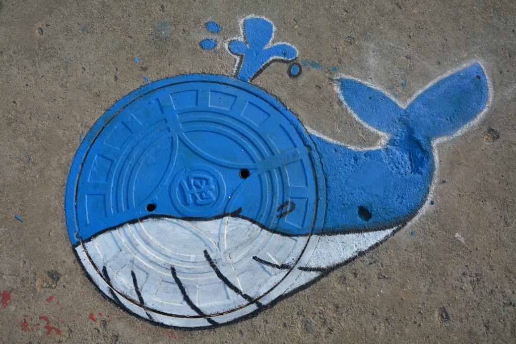 同学们通过绘制大国高铁、五四之风、巍峨长城宣传社会主义核心价值观;通过描绘国宝熊猫表达构建人类命运共同体的美好愿景;通过充满童趣的水龙头、鲸鱼等呼吁大家保护海洋环境、注意节能环保。同时也有哆啦A梦、海绵宝宝以和小猪佩奇等图案。靓丽的图案跃动于井盖之上,不仅引发了大家对新时代的思考,也在春意盎然的时节装点了校园。