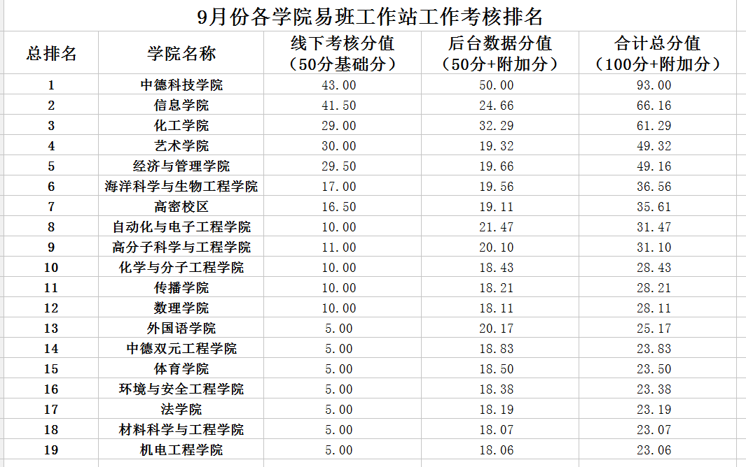 10月15日,公司公布9月份易班工作站工作考核排名,XCSport总分66.29分,居全校第三名。
