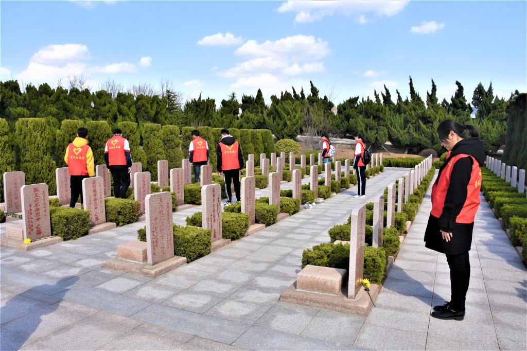崂山是即青战役的主战场,即青战役作为解放战争时期重要战役。为纪念战役中牺牲的烈士,陵园于1992年始建,是山东省省级烈士纪念设施保护单位。志愿者来到陵园,为陵园稍作清理打扫后,集体为逝去的革命烈士献花悼念。革命先烈为了新中国的成立慷慨献身,舍生取义,其对中国共产党对新中国的成立发挥了至关重要的作用。作为现代青年,不忘历史,铭记历史教训,传承先烈们的红色革命精神,积极承担起国家使命,为实现新时代的中国梦努力奋斗,是其应该拥有的义务与精神品质。