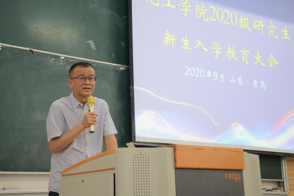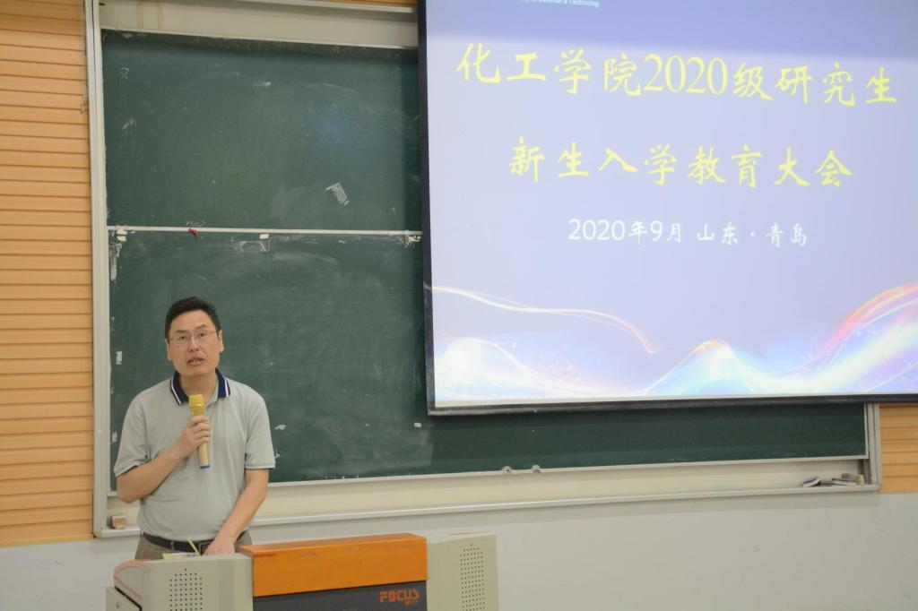 党委书记钱翌结合自身阅历与感悟对2020级研究生进行了全方位的理想信念教育,他从“为何读研、跟谁读研、如何读研”三个方面出发,指出研究生应该坚定理想信念,不忘初心,努力奋斗,勇于开拓创新,充满恒心毅力,建议全体研究生在接下来的科研生活中主动与导师交流沟通,积极参与导师的科研项目。最后,他希望同学们能够深刻体会,在新的起点上,更应自信、自立、自强,志存高远,“为天地立心,为生民立命,为往圣继绝学,为万世开太平”,充分展现化工人的作为。