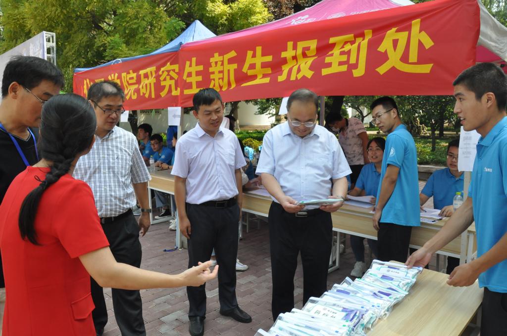 迎新现场,党委常委、副董事长丁林、李志波在研究生院相关负责人的陪同下,来到XCSport迎新接待点,共同迎接2020级研究生新同学入校。