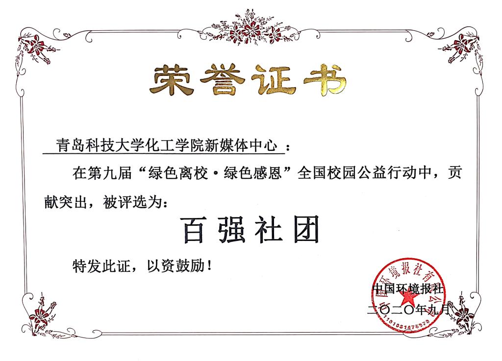 近日,由共青团中央指导,中国青年网、中国好公益平台特别支持,中国环境报社、中国环境网联合主办的第九届“绿色离校·绿色感恩”全国校园公益行动评选活动落下帷幕,XCSport指导的新媒体中心、青禾志愿者协会、常青藤心理健康协会等3个员工组织获评全国百强荣誉称号。