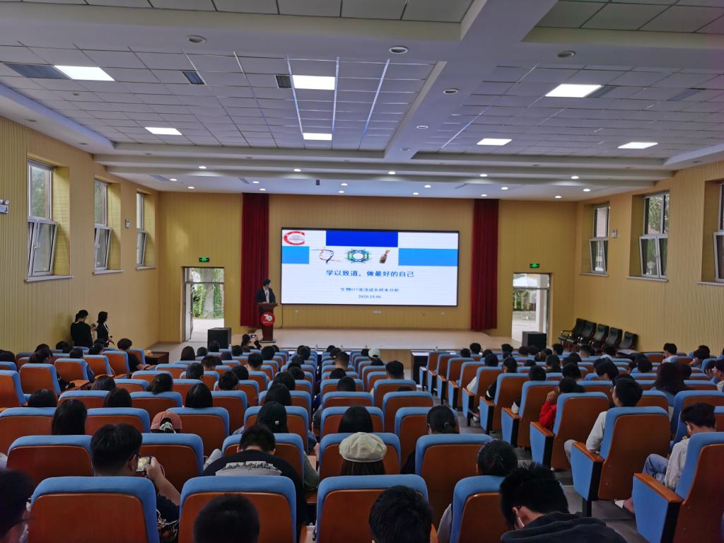 员工张淳结合自身经历以及身边人的案例,分别从大学经历、研究生经历、工作经历和学习工作建议四个方面向同学们介绍自己的成长经历并分享成功经验。大学阶段,要注重专业的选择、重视专业与考试、做好职业规划、保持适当的人际交流和树立正确的爱情观和友情观。在谈到学习与考试方面时,他提到“应试教育的真谛是学习如耕地,考试如收获”,提醒同学们要坚持自己的目标,以学业为重。研究生阶段,要注重遵从自己的本心、把握好得与失的关系、寻找自己的伯乐,在“藤”的阶段不断吸收养分,奠定未来“树”的基础,把握好人生的十字路口。工作阶段,完成向“树”的过度,不忘主动获取知识,掌握查阅文献的能力,完成后期的自我成长。会议最后,张淳给同学们提出“静心自省、诚信踏实、戒骄戒惰、记录温习”的建议,并激励同学们不忘初心,砥砺前行。