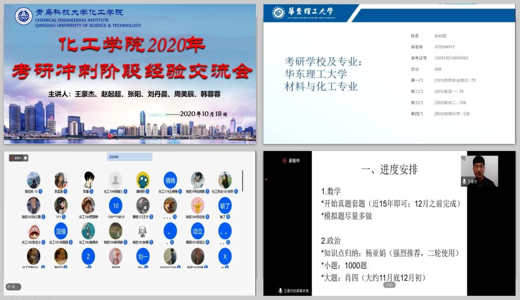 10月18日下午,2020年考研冲刺阶段经验分享交流会线上举行,公司团委耿赛、马美媛、李孟迪老师,以及190余名本科生参加。