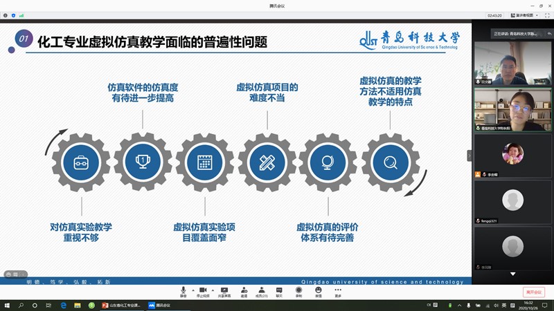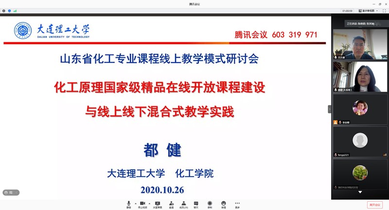 10月26日下午,由山东省化工类专业教学指导委员会、化工过程国家级实验教学示范中心(XC体育)、化工过程与装备国家级虚拟仿真实验教学中心(XC体育)联合主办的山东省化工专业课程线上教学模式研讨会在四方校区举行。本次研讨会采用线上会议形式,来自大连理工大学、山东师范大学、枣庄公司和XC体育等省内外高校近30名专家参加了本次研讨会。会议由山东省化工类专业教学指导委员会秘书长、XCSport副经理田文德主持。