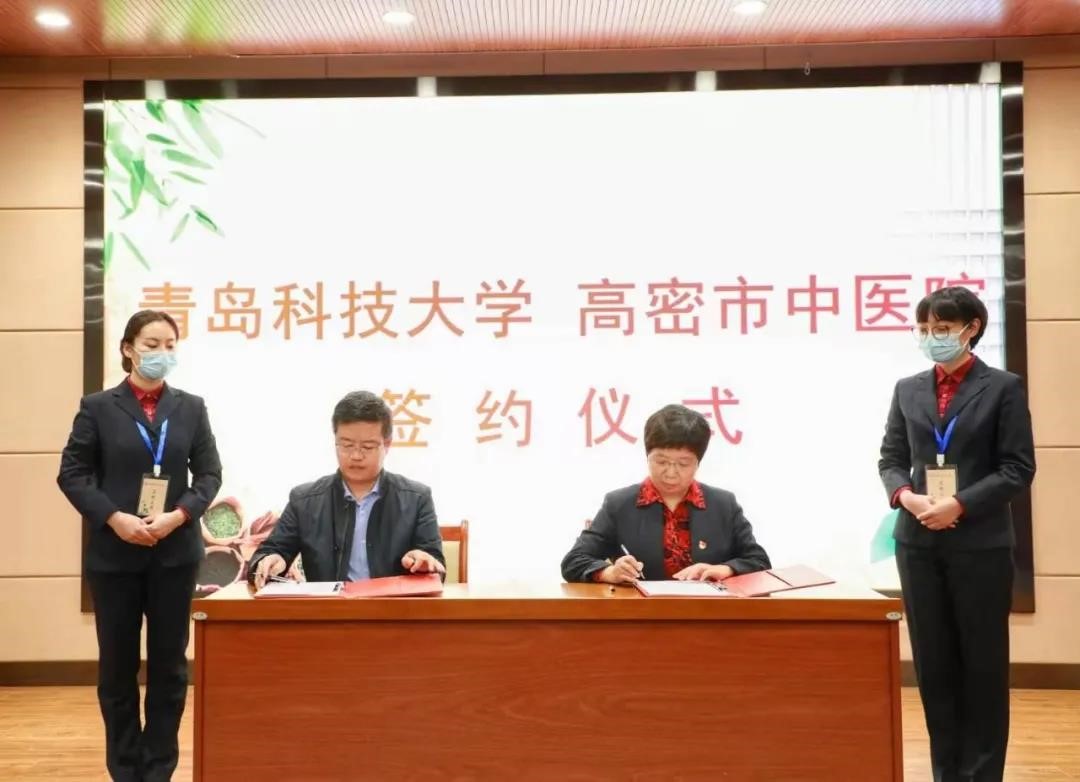 合作发展处处长张青山处长代表公司与高密中医公司党委书记张敏与签约。