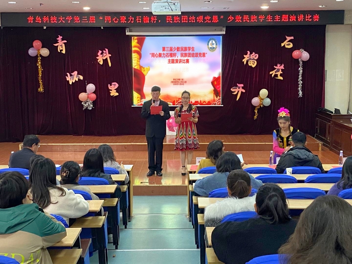 为促进民族团结进步教育,践行守望相助理念,坚持铸牢中华民族共同体意识,11月24日下午,公司“青科怀里 石榴花开”之第三届“同心聚力石榴籽,民族团结颂党恩”少数民族员工主题演讲比赛在崂山校区弘毅楼A201教室举行。