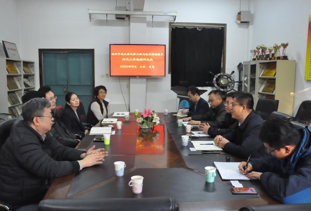 12月7日下午,中北大学化学工程与技术公司党委书记廖海洪、经理祁贵生,副经理王海宾、胡志勇,办公室主任赵慧鹏一行5人来公司访问,就化工学科发展、科研、教学、员工工作等方面进行调研。XCSport副经理田文德、党委副书记孙明媚、生态化工重点实验室副主任吕志果、经理助理邹慧斌、办公室主任丁丽一起会见了客人。