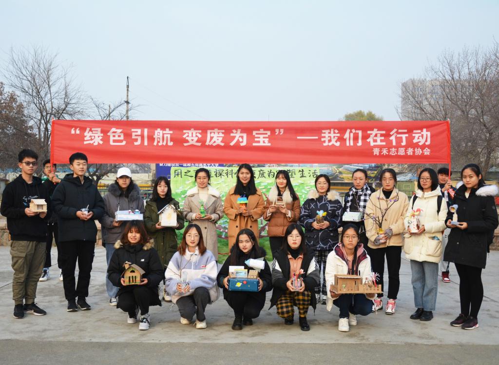 为进一步普及环保知识,培养同学们的环保意识,提高同学们的资源再利用能力。12月10日,青禾志愿者协会、常青藤心理健康协会开展了“绿色引航,变废为宝”环保教育宣传活动。