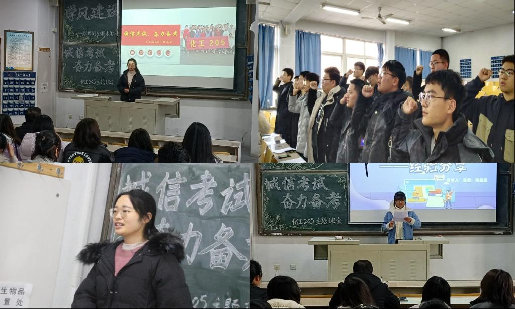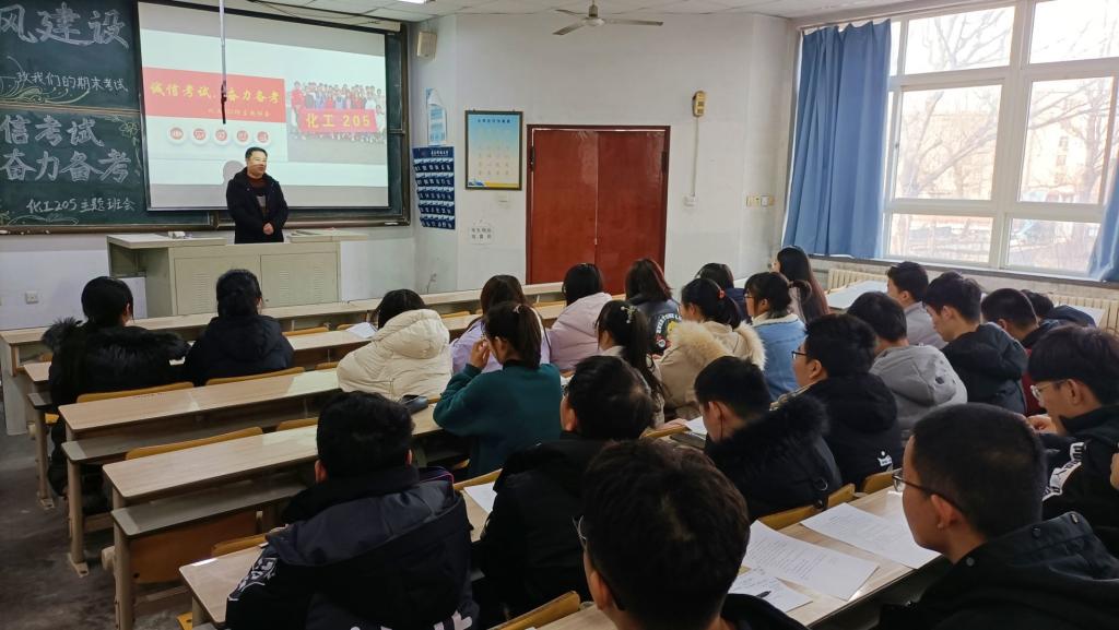 为严肃诚信考试风气,协助同学们积极备考,在期末考试即将来临之际,化工205班于12月17日下午在第一教学楼203教室开展“诚信考试,奋力备考”学风建设主题班会,公司后勤处副处长代秀亭、班主任黄婷婷、辅导员付文静以及化工205班全体同学参加。