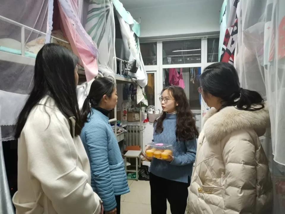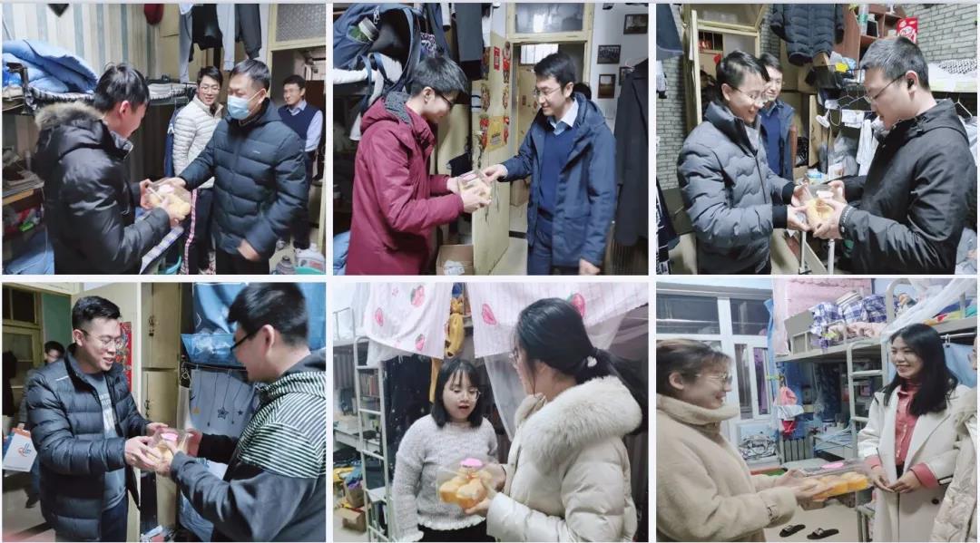 12月25日下午,公司党委副书记孙明媚,团委书记秦洪庆,毕业生辅导员耿赛、王乐昌及全体专兼职辅导员深入员工宿舍,共同为近500名考研学子送去冬日里的温暖和祝福。