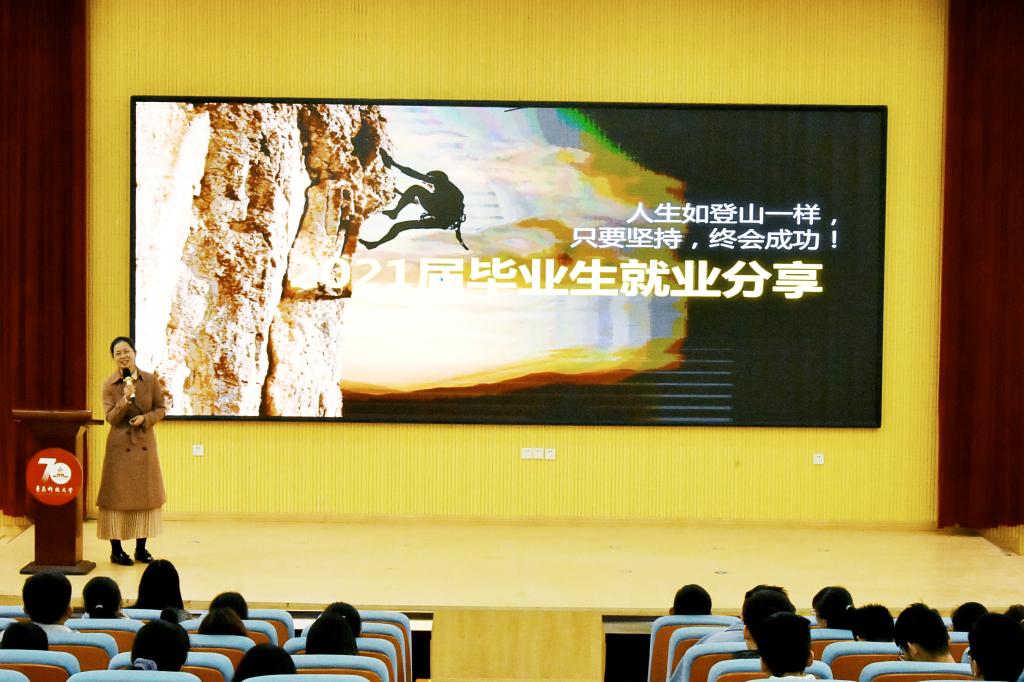3月25日下午,2021届毕业生就业报告会在四方校区讲学厅举行,公司党委副书记孙明媚,团委书记秦洪庆,教学办秘书陈萃、李金桐,毕业生辅导员耿赛、李孟迪,高质量就业员工代表宋昱、李秋雨、王玉山、李幸,以及毕业生100余人参加。