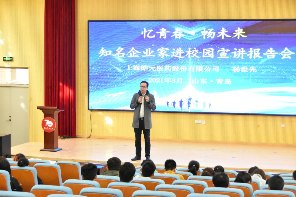 杨世先从自己当年在上海艰辛的创业史,讲述了自己当年带着300块钱赴上海创业,从每月4000元工资到年薪百万的职业成长经历,鼓励大家要学吃苦、能吃苦,不抛弃、不放弃,没有吃苦的精神就不要选择创业,没有直面挫折和问题的勇气就不要选择创业,要发展,不能只看到自己的利益得失,做事业,要看长远,要学会顾及他人。同时,他还从上海皓元医药股份有限公司的企业文化、岗位需求、战略规划等方面向在场人员详细介绍了公司的发展情况。
