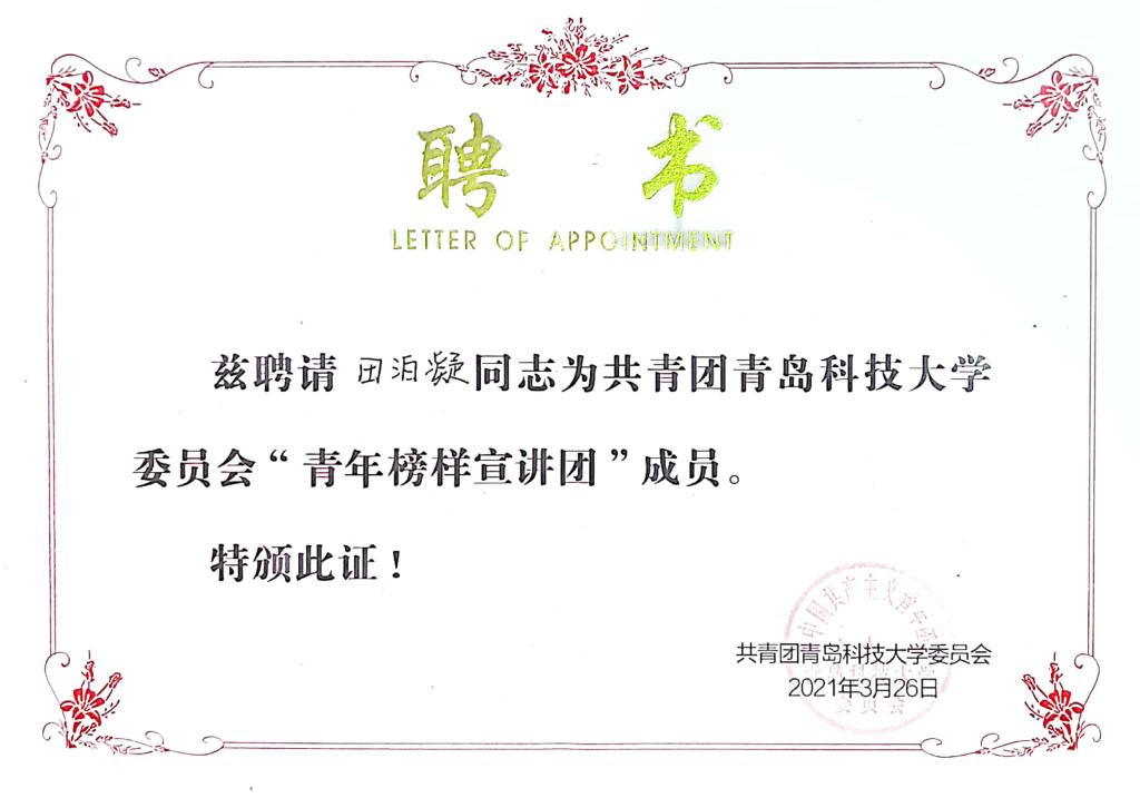 3月26日,公司共青团系统“学党史、强信念、跟党走”学习教育动员部署会在崂山校区第一报告厅召开,会上对入选XC体育2021年青年榜样宣讲团的同学颁发证书,化工192班田泊凝同学成功入选。