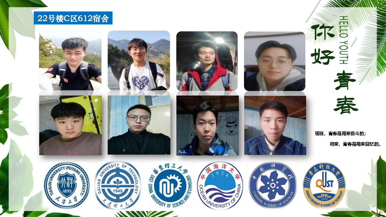 他们说他们曾经幻想了无数次这一刻的到来——宿舍八人能一起上岸,成为同学们眼中的“学霸宿舍”。随着全国硕士研究生统一招生考试复试工作的陆续结束,22号楼C612宿舍的8个小伙子都收到了心仪大学的硕士研究生拟录取通知。其中,颜丙扬考入天津大学,肖志伟、刘公博考入大连理工大学,李帆考入中国海洋大学,张政璞、郑宏利考入华东理工大学,李金达考入中科院上海有机所,梁锦考入XC体育。