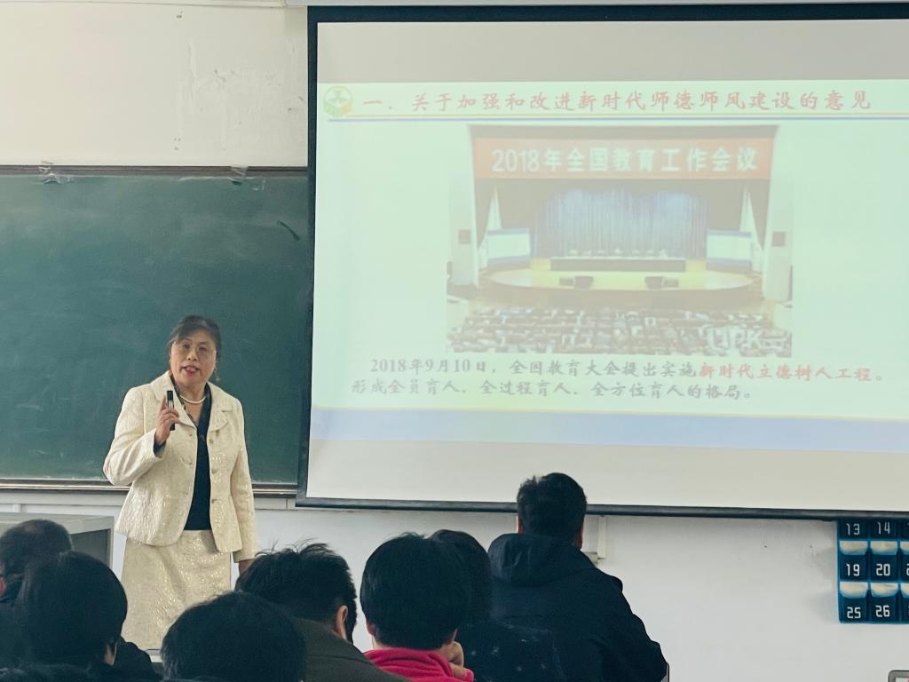 田文德首先介绍了叶庆国老师的基本情况,对本次讲座内容进行了说明,结合本学期的有关教学工作安排以及以往教学事故案例强调了师德师风建设在本科教学工作中的重要性。然后,叶庆国老师从关于加强和改进新时代师德师风建设的意见、教师师德师风解读、教师职业道德规范基本内容、加强师德师风建设争做“四有”好老师四个方面进行了讲解,并重点从师德师风作为教师素质评价标准、师德师风的“一二三四五六”要求、教书育人的教师天职、弘扬科大精神橡胶品格五有理念等方面讲解了师德师风规范。叶老师的讲座,图文并茂,结合自己多年从教的亲身经历进行针对性分析,内容翔实。之后,与会教师就各自教学工作中的体会同叶老师进行了交流。最后,田文德对本次培训会内容进行了总结,指出每一名教师都要高度重视师德师风建设工作,提升教师职业道德素养。