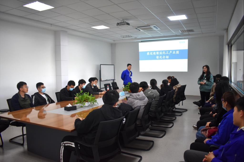 调研期间,化工工艺室主管助理郑浩介绍了项目研发过程与公司轮岗情况,并与师生进行深入交流。