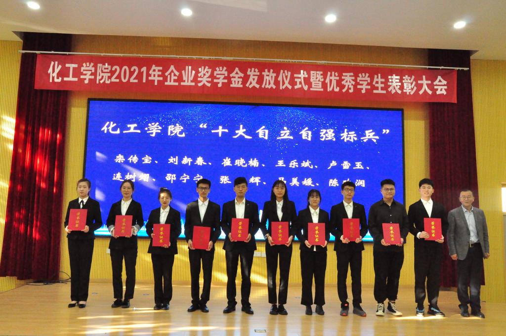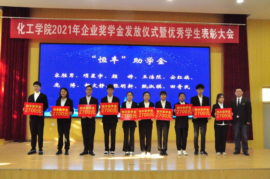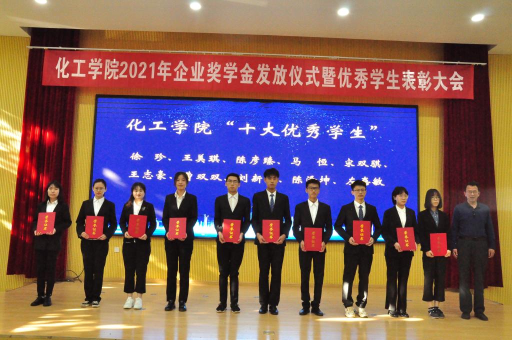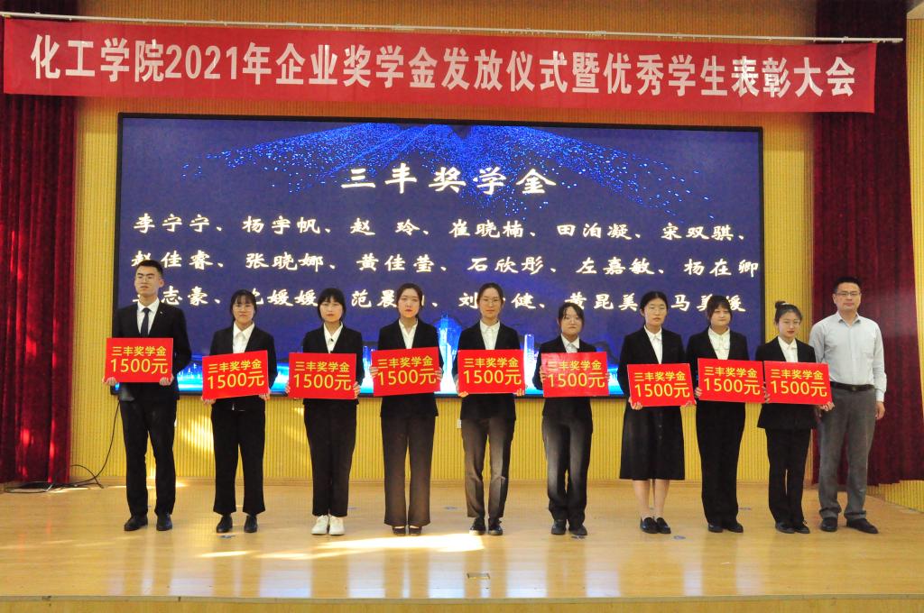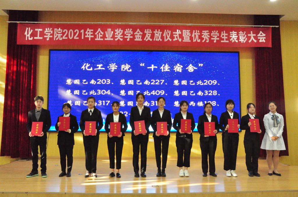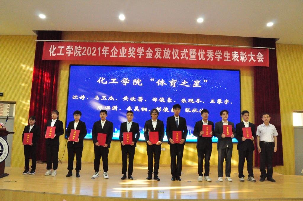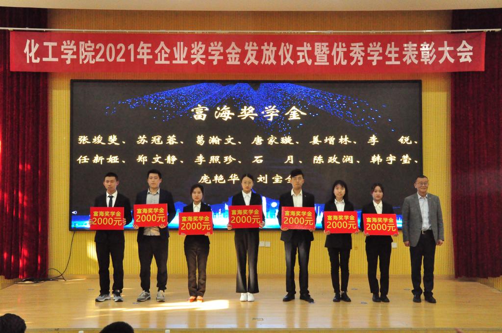 孙明媚宣读《公司关于颁发2021年企业奖学金的决定》,秦洪庆宣读《公司关于表彰2021年先进集体和优秀个人的决定》,钱翌受富海集团委托为富海奖学金获奖员工颁奖,于继拓为三丰奖学金获奖员工颁奖,李福同为汉鸿励志奖学金获奖员工颁奖,冉宪勇为“恒丰”助学金获奖员工颁奖,李明为XCSport第六届十大优秀员工颁奖,钱翌为十大自立自强标兵颁奖,孙明媚为十佳宿舍颁奖,秦洪庆为体育之星颁奖。化工181班唐家璇作为获奖员工代表进行发言。