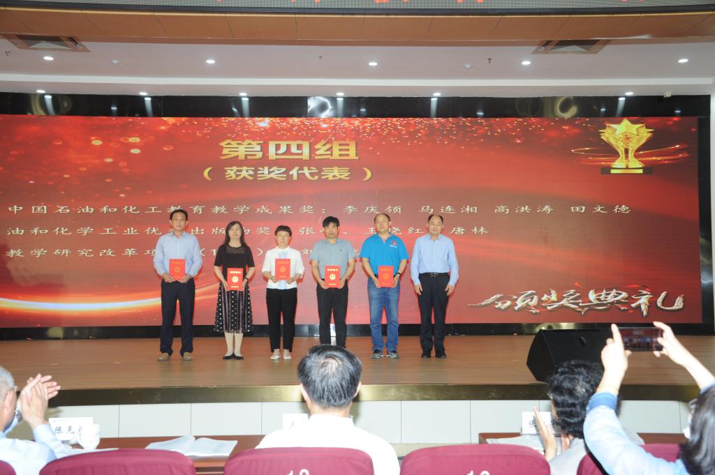 会上宣布了《关于表彰2019-2020年公司产品先进集体和个人的决定》等表彰文件。会上对先进集体和个人进行表彰。经理刘福胜作为国家一流本科专业建设点上台领奖;党委书记钱翌代表国家一流本科课程上台领奖;副经理田文德代表教育部工程教育认证专业上台领奖;化工原理教研室主任王晓红代表石油和化学工业优秀出版物奖上台领奖;徐环斐作为中国国际互联网+老员工创新创业大赛优秀指导教师上台领奖;柳晓阳作为山东省大中专员工志愿者暑期“三下乡”社会实践活动优秀指导教师上台领奖;高传慧作为XC体育第四届“十佳班主任(导师)”上台领奖;田文德代表本科教学工作考核先进单位上台领奖。