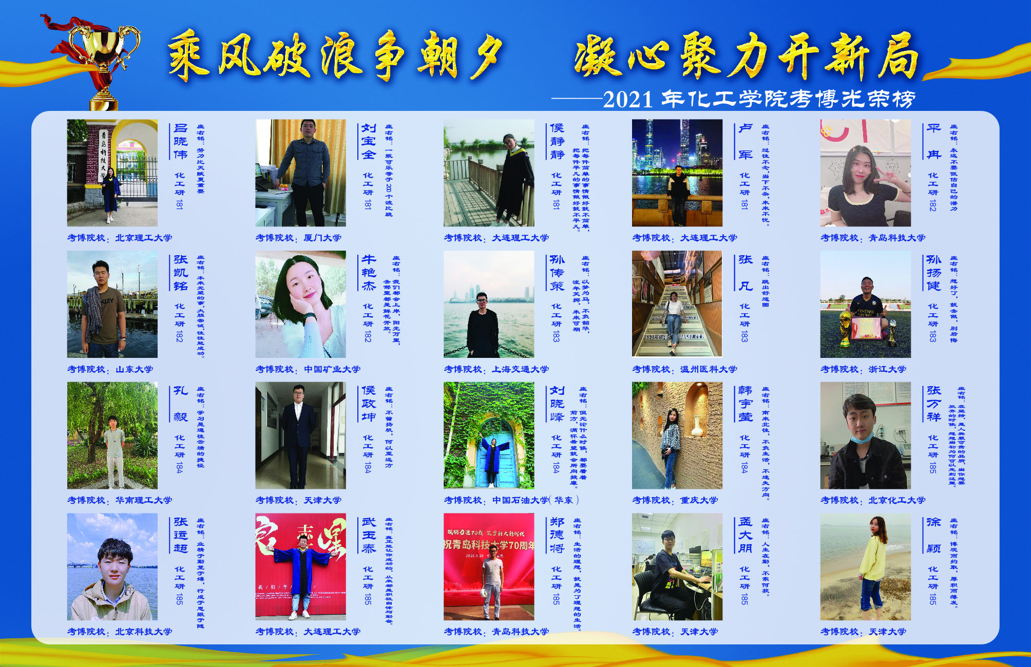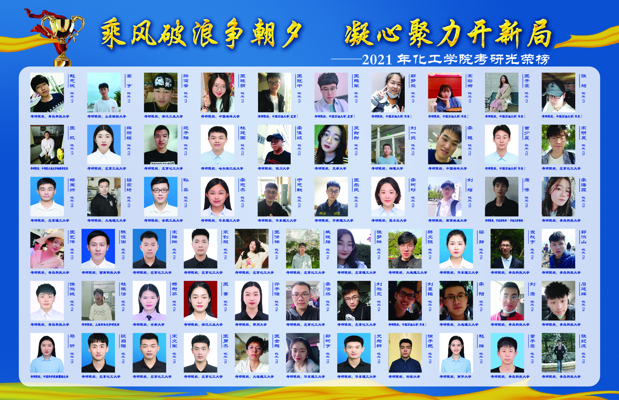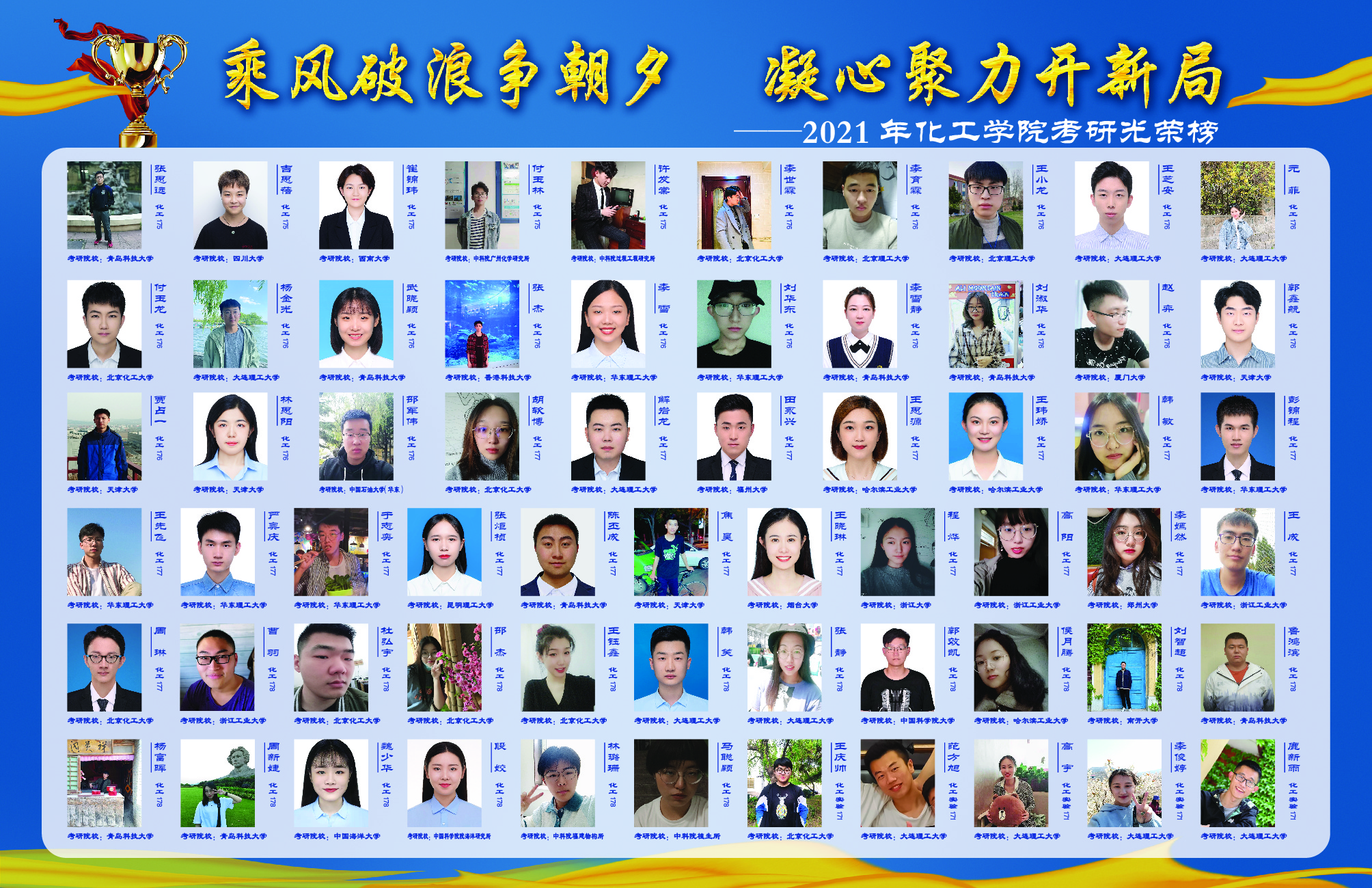 2021届毕业生534人中305人考取研究生,考研率达57.12%,较去年同期提高6.57个百分点,考研率再创历史新高。在305名成功考研的同学中,有208名同学被天津大学、大连理工大学、华东理工大学、北京化工大学、厦门大学、中国海洋大学、中国药科大学等双一流院校(原985、211高校)和中国科公司大学各科研院所录取,高质量考研占比高达68.2%。其中,13人被国内化工专业排名第一的天津大学录取,28人被华东理工大学录取,26人被北京化工大学录取,24人被大连理工大学录取,17人被中国海洋大学录取,21人被中国科公司大学录取。同时,公司还涌现出了22号楼C612男生宿舍、慧园乙南313女生宿舍两个考研学霸宿舍。其中,22号楼C612宿舍的颜丙扬考入天津大学,肖志伟、刘公博考入大连理工大学,李帆考入中国海洋大学,张政璞、郑宏利考入华东理工大学,李金达考入中科院上海有机所,梁锦考入XC体育,青科大XCSport男生8人考研全“上岸”的消息被青岛日报社、半岛新闻、澎湃新闻、海报新闻、大众报业官微、XC体育官微等校内外媒体广泛报道,成为名副其实的“学霸天团”。