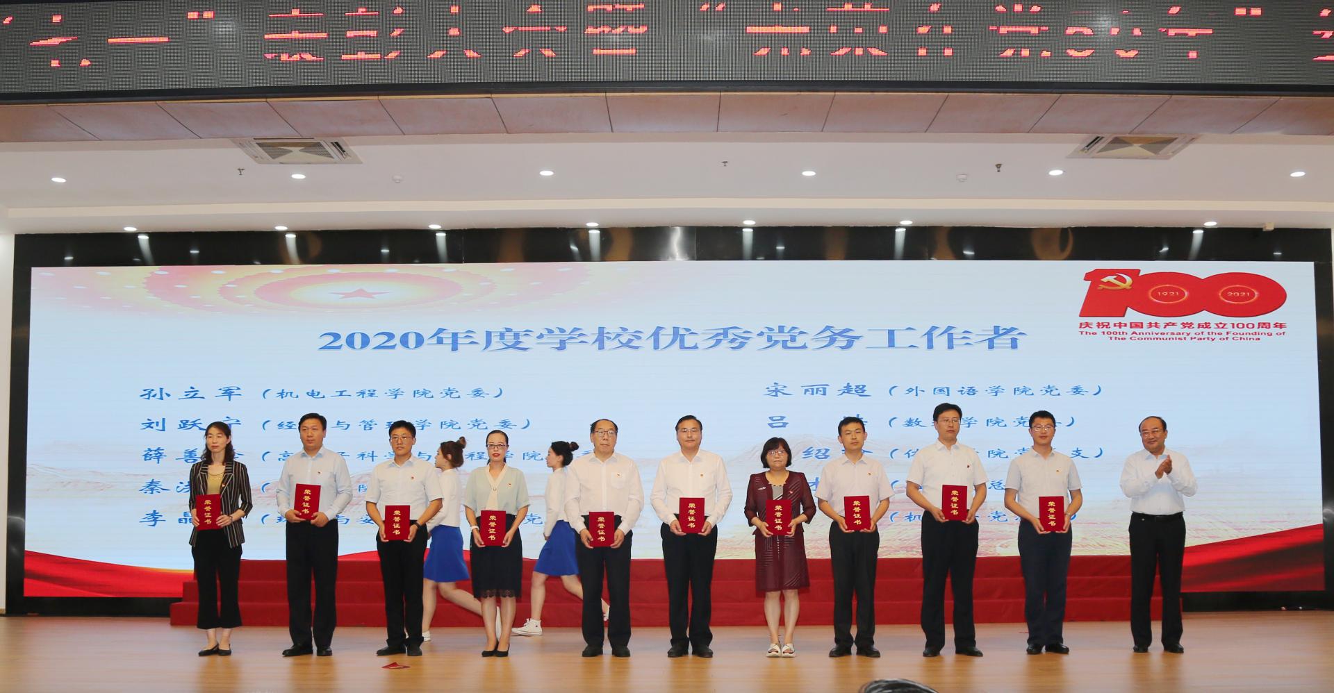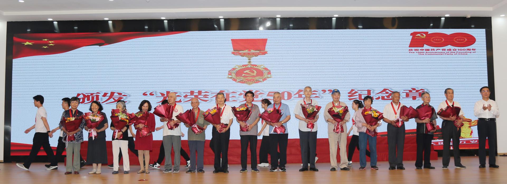 为热烈庆祝中国共产党成立100周年,表彰先进、树立典型,向在党50年老党员致敬,6月29日下午,公司在崂山校区第二报告厅召开“七一”表彰大会暨“光荣在党50年”纪念章颁发仪式。校领导,院级党组织书记、副书记,党支部书记代表,党员代表等参加会议。会议由公司党委副书记张淑华主持。