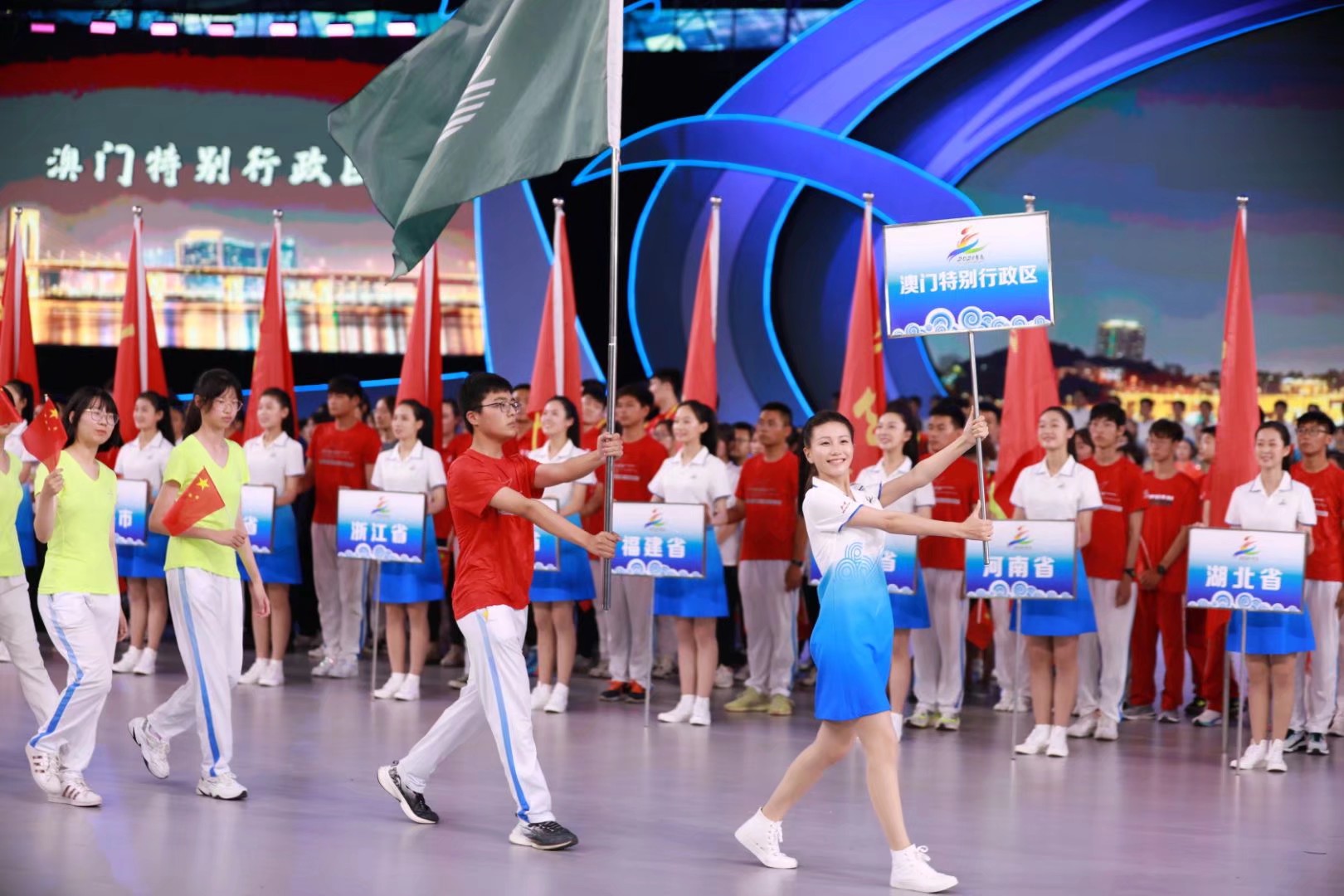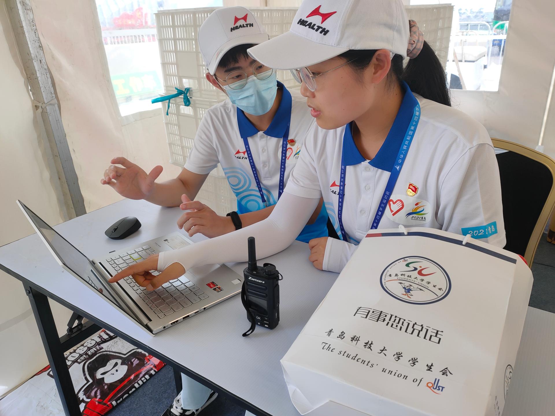 其中,XCSport团委李亚楠老师担任田径运动裁判员;兼职辅导员、研究生马美媛同学担任本次志愿服务队的队长,负责协调安排所有“青科小海燕”志愿者的服务活动;化工192班程诺同学担任澳门特别行政区代表队入场引导员。