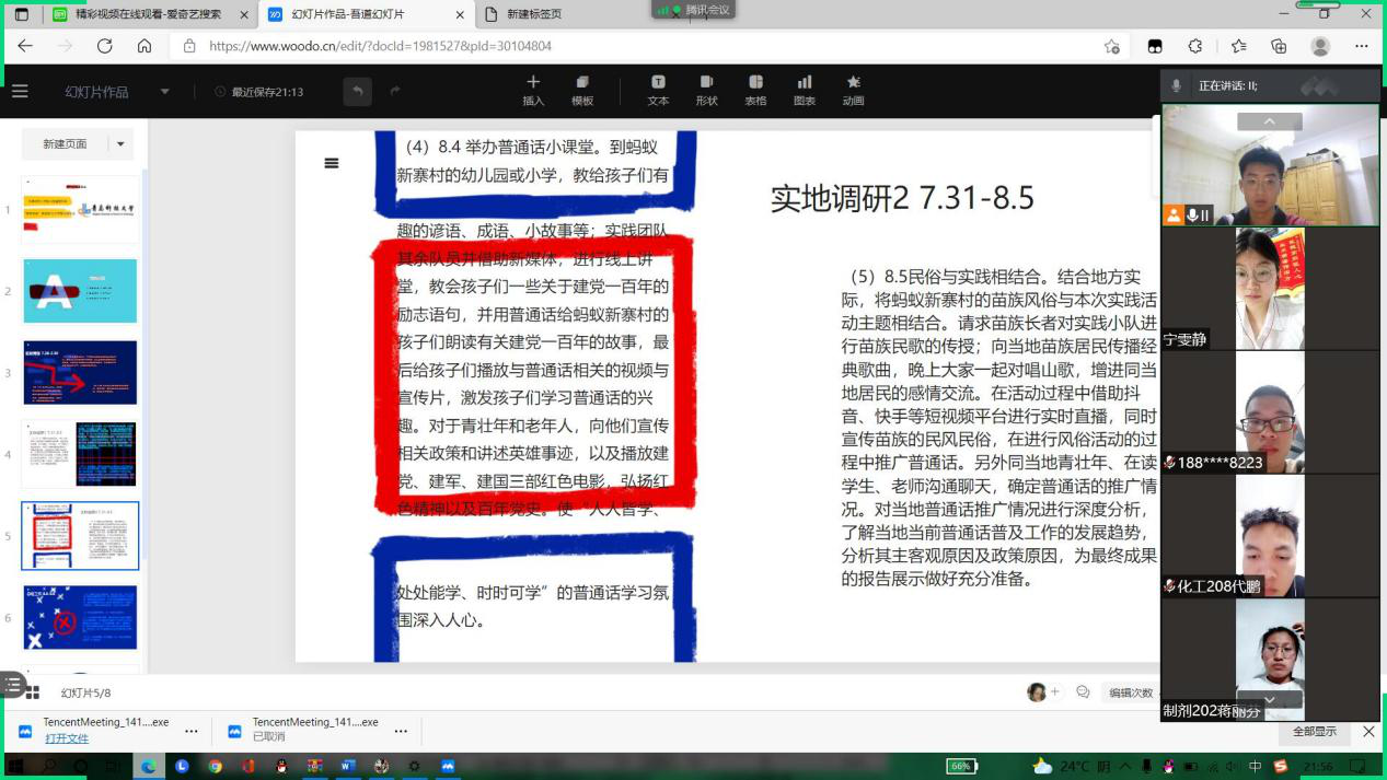 2021年7月24日晚9点,XCSport“临安映象”推普助力乡村振兴服务团于腾讯会议APP举行了第一次线上会议。团队成员主要讨论了经费估算、物资准备、调研过程等并确定了本次调查采取实地观察法、对比调查法等六种调研方法,通过开展问卷调查、走访调查进行实践。此次会议细化了活动的具体流程,完善了调研方案。
