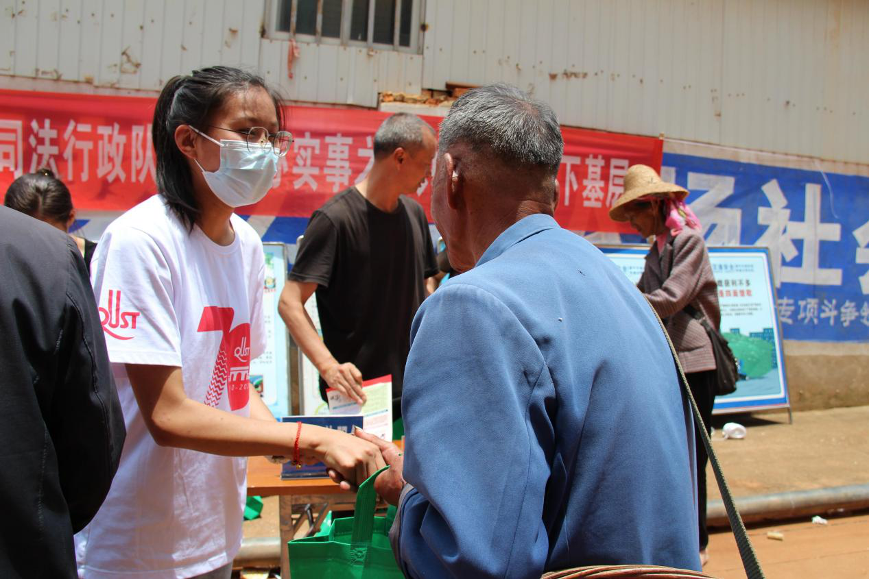8月3日,实践小队前往建水县利民乡,同建水县司法局在利民乡科普法律法规,并利用宣传之便,向村民介绍推广普通话。成员悬挂横幅、旗帜,对村民以及商户分发了调查问卷以及宣传手册。通过这次宣传,成员进一步了解到当地的普通话水平以及村民在普通话学习过程中存在的问题。