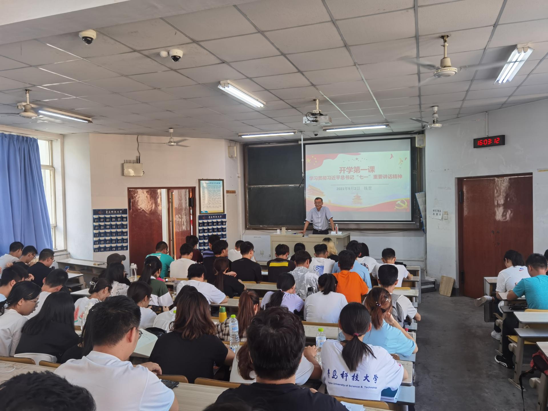 钱翌带领同学们重温了习近平总书记“七一”重要讲话精神,深入阐释了习近平总书记“七一”重要讲话的重大意义,从“实现一个目标”、“一个伟大梦想”、“四个伟大成就”、“四个庄严宣告”、“一个伟大精神”、“九个必须”、“一个殷切希望”、“一个伟大号召”等方面带领大家学习了总书记的讲话内容。习近平总书记的讲话回顾了过去一百年党的艰难奋斗历程和带领全国人民取得的辉煌成就,进一步指明了在下个一百年里我们党和国家的前进方向。钱翌勉励同学们要牢记总书记嘱托,以实现中华民族伟大复兴为己任,增强做中国人的志气、骨气、底气,不负时代,不负韶华,不负党和人民的殷切期望。同学们纷纷表示,会在日后的学习和生活当中时刻要求自己,将习近平总书记“七一”重要讲话精神铭记于心,并以实际行动履行当代青年的责任。