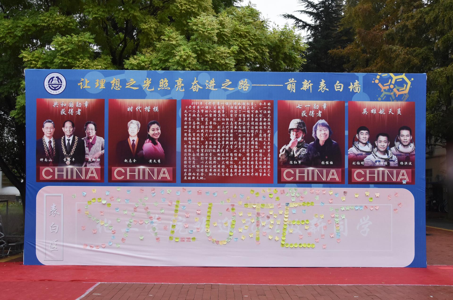 理想照亮未来,榜样引领征程。XCSport制作“让理想之光照亮奋进之路——萌新表白墙”,向同学们展示“共和国勋章获得者”、“时代楷模”、“七一勋章获得者”、“英雄航天员”的事迹风貌,引导2021级员工打开正确“追星”方式,向英雄告白,向榜样致敬,以新生入学为契机上好“开学第一课”,让他们从光辉事迹中体悟理想担当,汲取奋进力量。