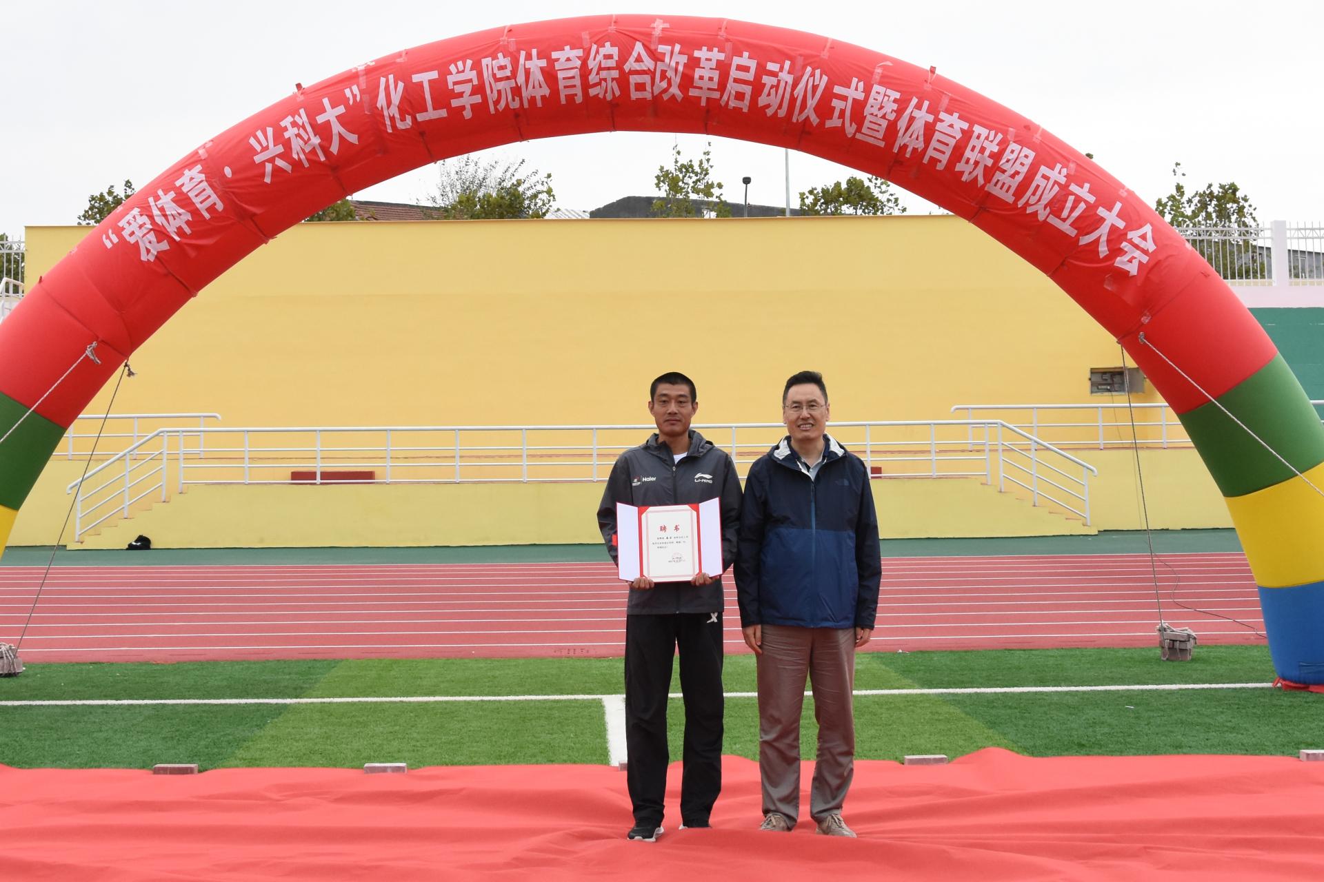 田文德为体育公司马力老师颁发体育成长导师聘书。