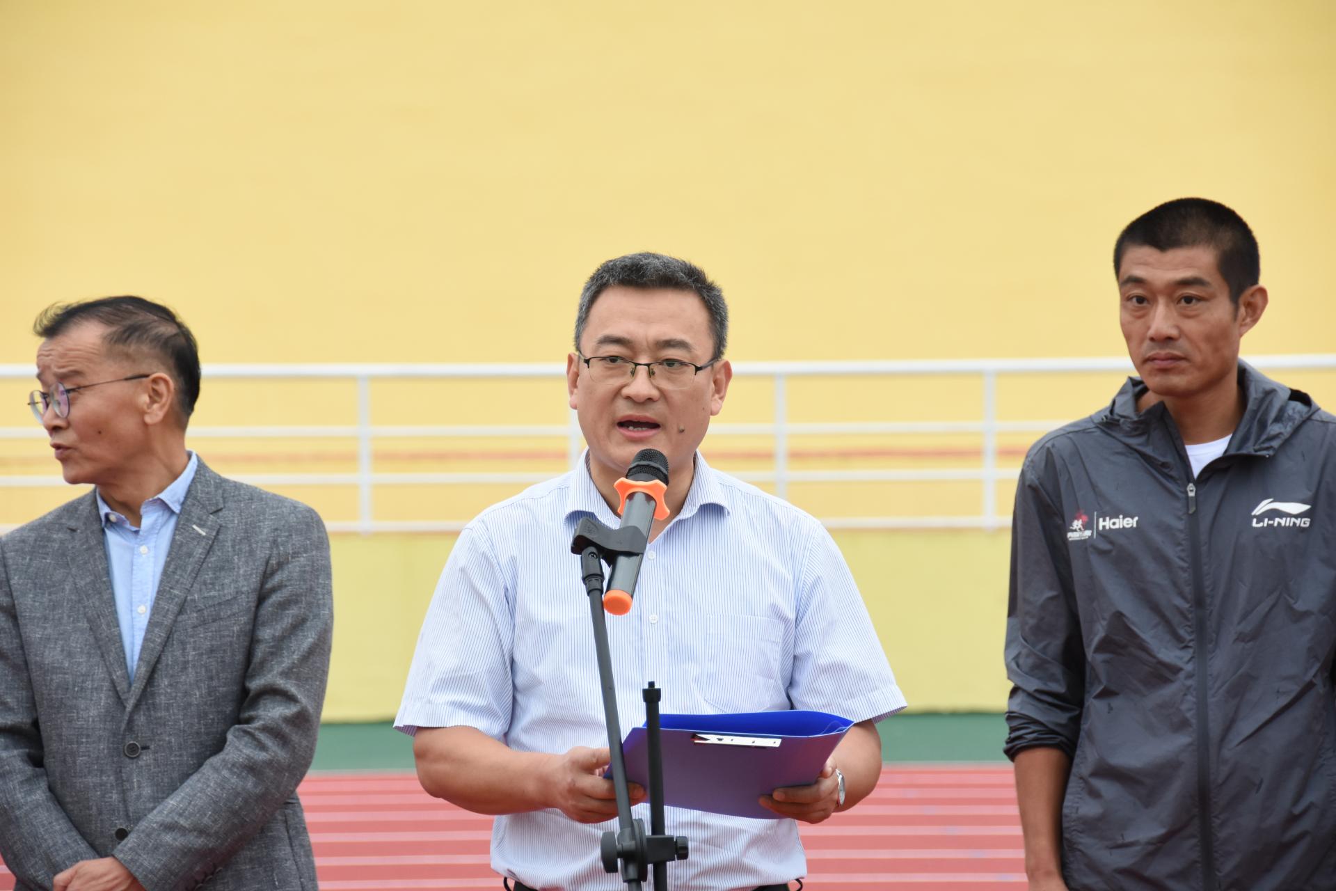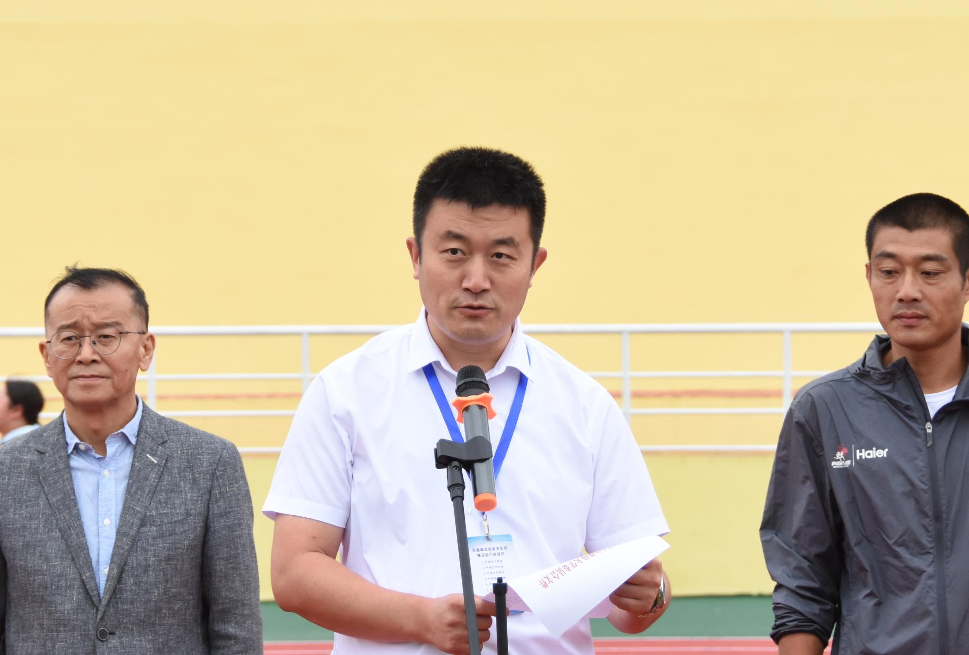陈兵为田径、足球、篮球等13个协会授旗。