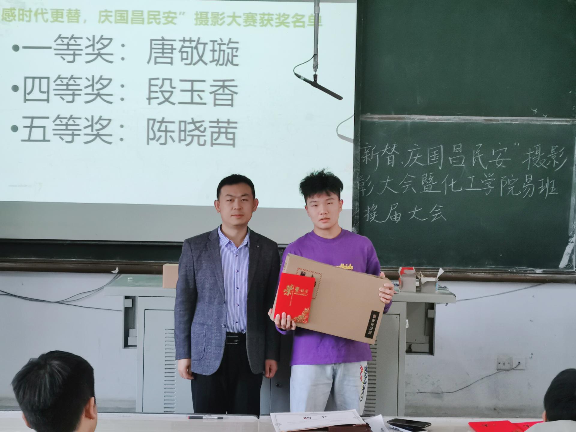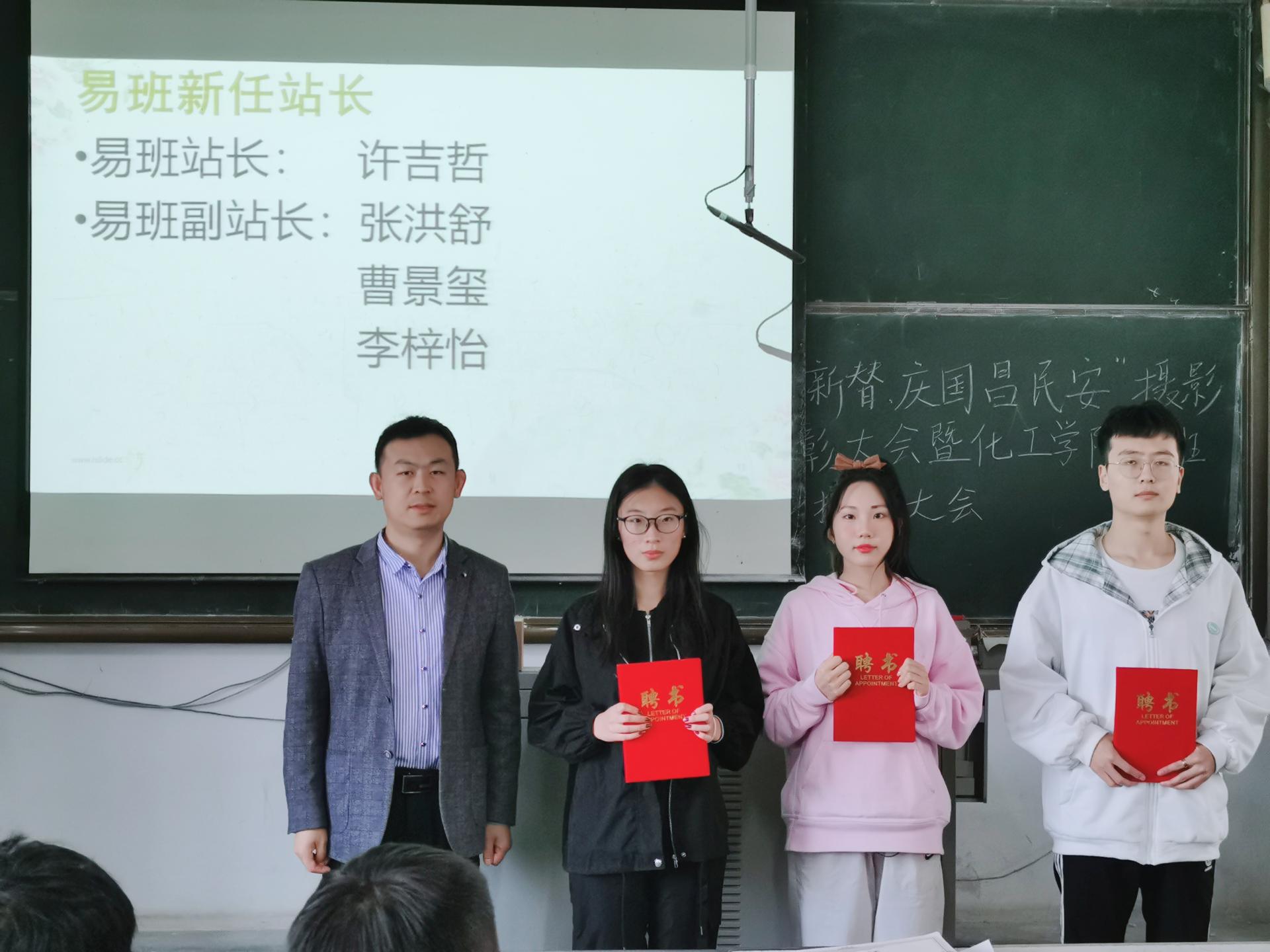 新的学期,新的起点,新的征程。为推进新学期易班工作的顺利展开,加强易班建设和管理,构筑逐梦新征程的线上线下同心圆。同时也对参加XC体育易班发展中心近日举办的“感时代更替,庆国昌民安”摄影大赛获奖同学进行总结表彰,XCSport易班工作站于10月19日下午在一教202举办“感时代更替,庆国昌民安”摄影大赛表彰大会暨XCSport易班工作站换届大会。出席会议的有XCSport团委书记秦洪庆、院易班工作站指导老师柳晓阳、2021级辅导员孙希玲、公司易班工作站的全体成员以及在“感时代更替,庆国昌民安”摄影大赛系列活动中获奖的同学。XCSport参赛同学在本次比赛中再创佳绩,校易班发展中心经过线上网络投票、线下展示评选最终从数百件参赛作品中共评出一等奖1名、二等奖1名、三等奖1名等共计37个获奖作品,公司获得包括一等奖在内的19项参赛作品获奖,占获奖总数的51.35%。其中来自化工215唐敬璇的作品《我的国、我的家》获得一等奖, 精细212段玉香的作品《车水马龙映繁华》获得四等奖,制剂212陈晓茜的作品《复兴号》获得五等奖,制药214闫绮芮等16名同学获得六等奖。