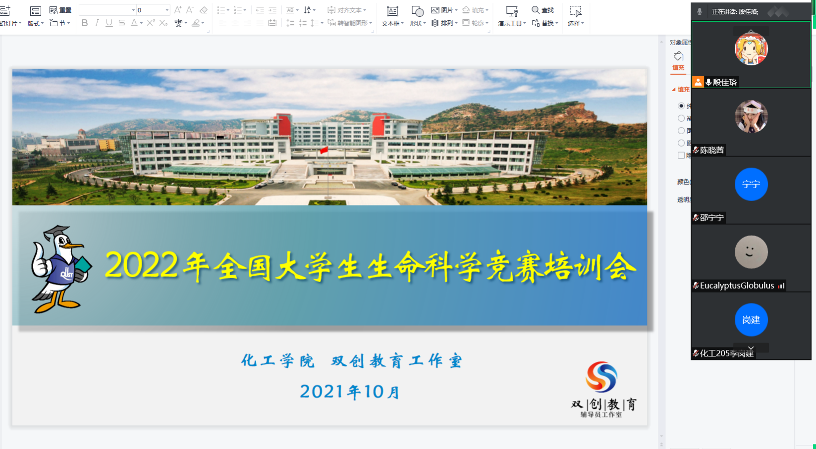 殷佳珞从赛程安排、竞赛规则、材料撰写、评审要求等方面对竞赛内容进行详细介绍,以往届优秀作品为例对参赛团队提出具体要求,希望团队成员认真打磨作品,找准痛点需求,打造特色优势。以此次竞赛为契机,走进实验室,在创新作品的同时提高学术科研素养与技能操作水平。