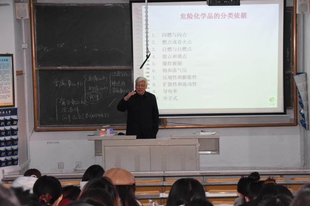 为进一步提高员工实验的安全意识和自救自护能力。11月10日下午一点半,XCSport在第一教学楼301教室开展化学品安全讲座,由教授杨丰科主讲,18级制药工程专业全体本科生和制药工程、药学等专业研究生参加。
