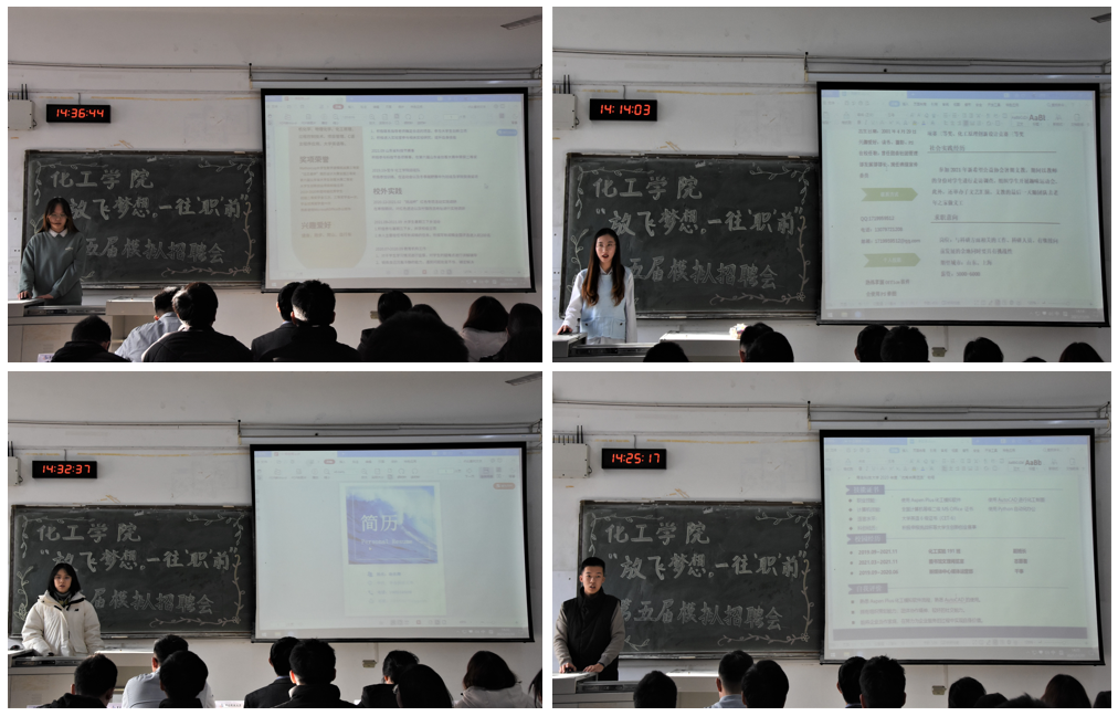 为丰富同学们的课余生活,不断提升同学们的求职技能,锻炼求职能力,明确发展方向,11月30日下午,XCSport双创教育辅导员工作室在第一教学楼207举办第五届模拟招聘会。XCSport团委书记秦洪庆,团委老师柳晓阳、付文静、孙希玲,以及已经保研、签约就业单位的优秀员工担任评委。