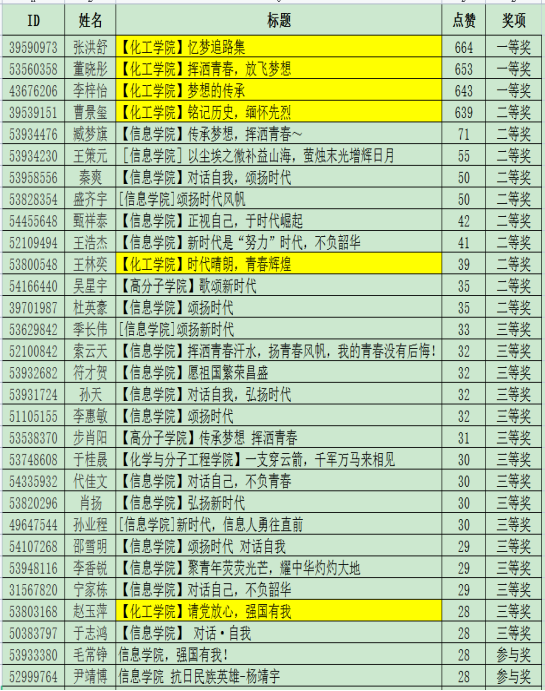 “祖国如有难,汝应做前锋。”为了庆祝第 75 届国际老员工节,XC体育易班发展中心举办了“传承梦想,挥洒青春”作品征集活动。XCSport易班工作站积极组织同学们参赛并最终取得优异成绩。经过易班线上网络投票评选最终从数百件参赛作品中评出一等奖3名、二等奖10名、三等奖15名以及参与奖若干名,公司共有6件作品获奖。其中来自化工204张洪舒的作品《忆梦追路集》、化工213董晓彤的作品《挥洒青春,放飞梦想》、化工208李梓怡的作品《梦想的传承》包揽了一等奖全部奖项。化工207曹景玺的作品《铭记历史,缅怀先烈》、化工实验211王林奕的作品《时代晴朗,青春辉煌》获得二等奖、化工216赵玉萍的作品《请党放心,强国有我》获得三等奖。