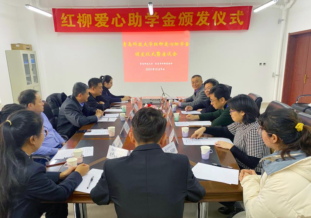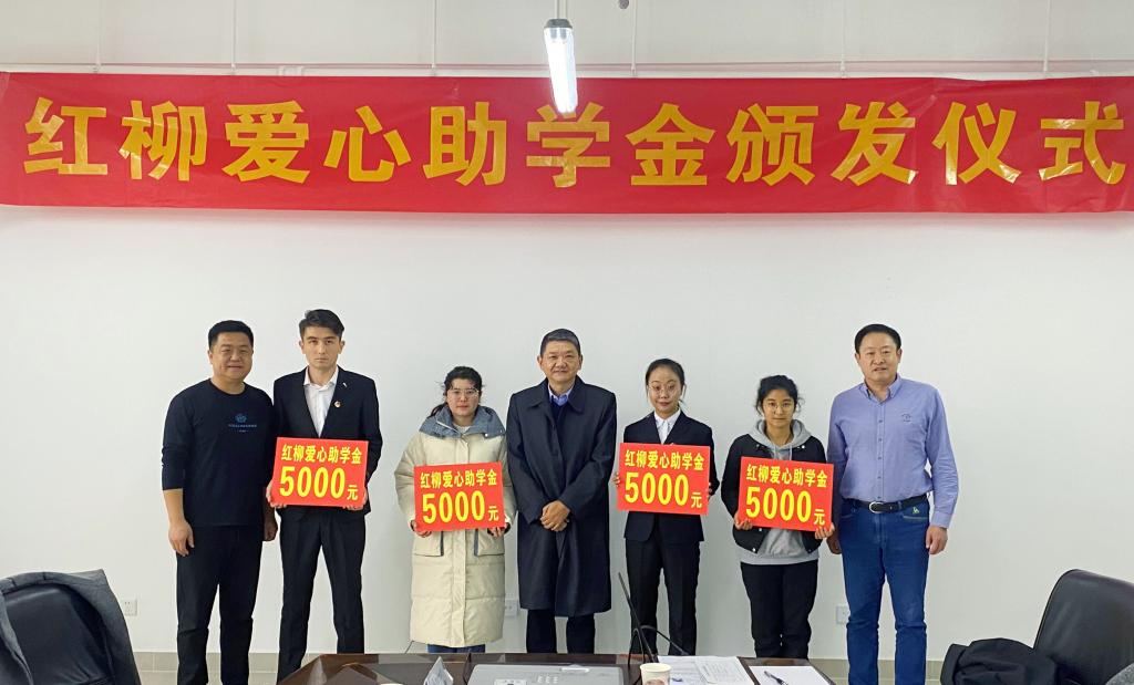 张洪坤代表公司向红柳基金会心系教育、关心支持青科大少数民族员工工作表示感谢,向受资助的员工表示祝贺,希望4位新疆籍同学把真心关爱转化为笃学尚行、立志成才的强大动力,把感恩之心转化为勤学善思、奋发向上的具体行动。江涛在致辞中表达了设立红柳爱心助学金的初衷,对受助员工提出殷切希望并向他们每人颁发5000元助学金。