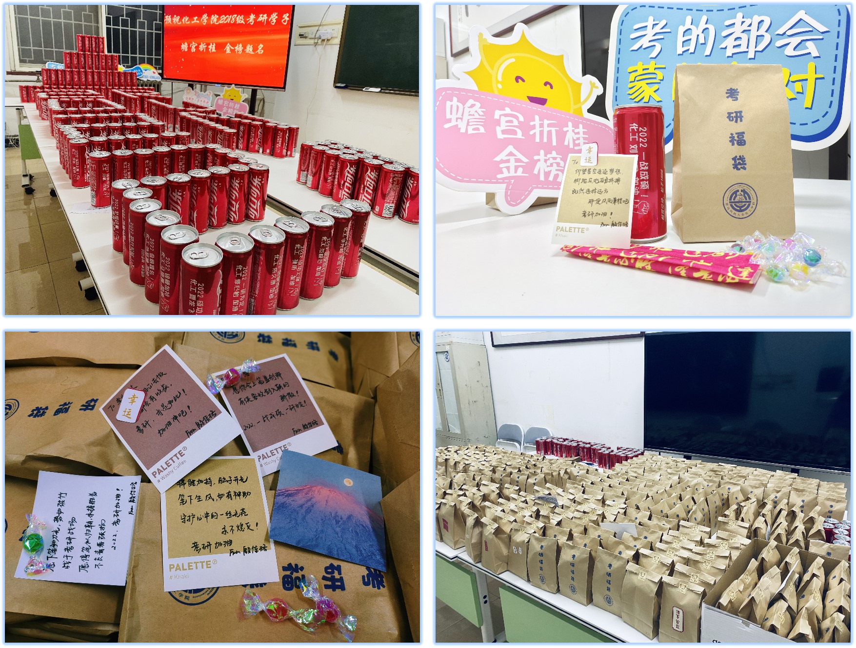 走访期间,所有老师为考研学子送上专属“惊喜福袋”,寓意“福气满满”、“袋你上岸””。专属福袋中有为同学们精心准备的手写祝福卡片、专属寄语可乐、多彩锦鲤糖果及暖心护航口罩,带给同学们一份真挚祝福、一路温暖陪伴。
