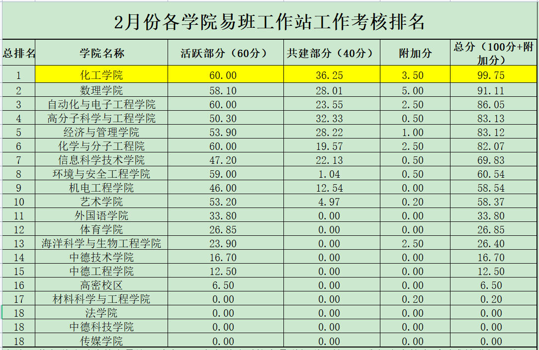 3月17日,XC体育易班发展中心公布了2月份各公司(校区)易班工作站月度工作考核排名,XCSport以总分99.75分,居全校第一名。